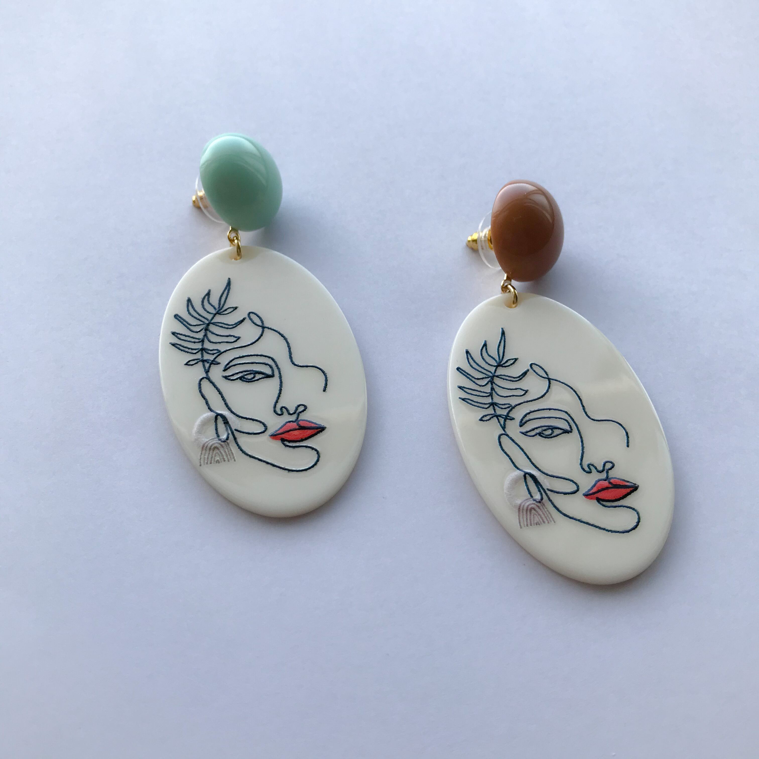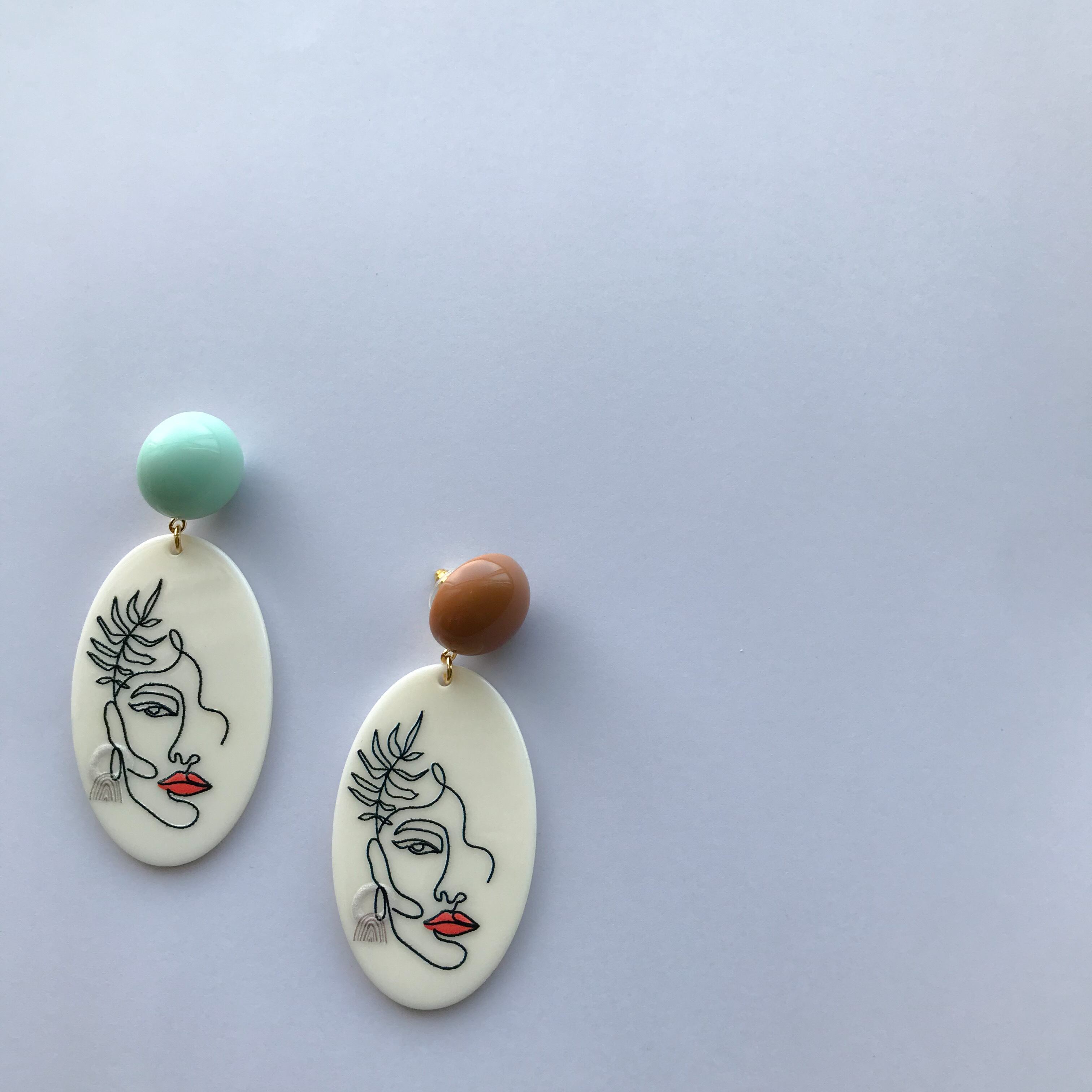 個性的なプリントアクリルピアス、パステルカラーでバイカラーなのも可愛いです。